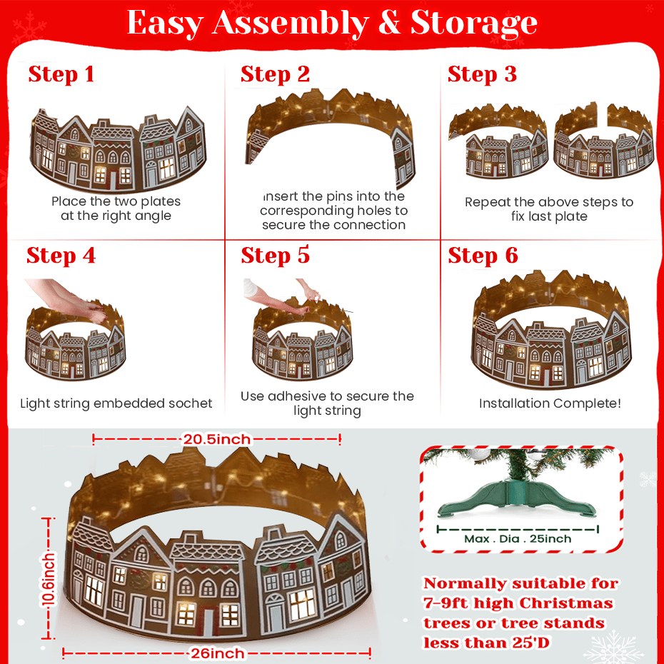 The Tree collar consists of five removable panels that can be assembled without screws, simple to install and disassemble, perfect for easy holiday decorations.