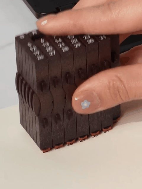 The best part about these connected stamps is how you can change colors on specific areas by taking them apart, applying different colors on different chunks, and bringing them back together with a firm squeeze.