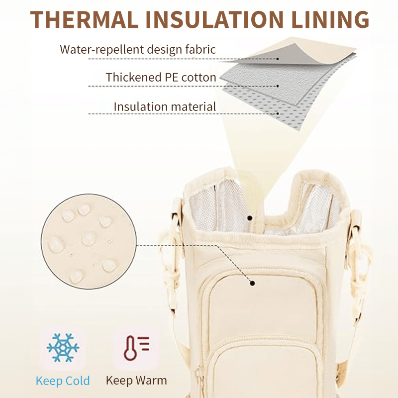 Made of high-quality waterproof fabric, it effectively avoids scratches and splashes. The thermal insulation lining can effectively keep the drink at the ideal temperature for a long time without worrying about the drink deteriorating.